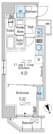 所在階/向き | 8階/北 | 間取り | 1DK+WIC+SIC |