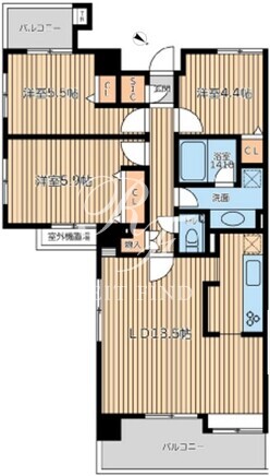 部屋詳細 | LDK13.5帖/洋室5.9帖/洋室5.5帖/洋室4.4帖 | ||