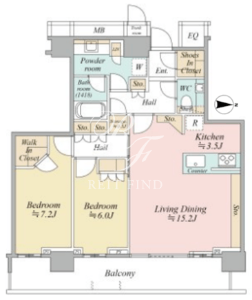 | 所在階/向き | 36階/東 | 間取り | 2LDK+WIC+SIC |