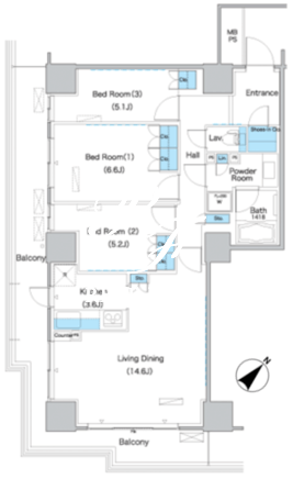 | 部屋詳細 | LDK18.2帖/洋室6.6帖/洋室5.1帖/洋室5.2帖 | ||