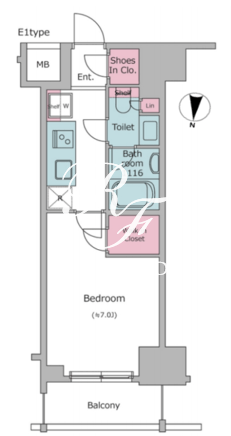 | 所在階/向き | 5階/北 | 間取り | 1K+WIC+SIC |