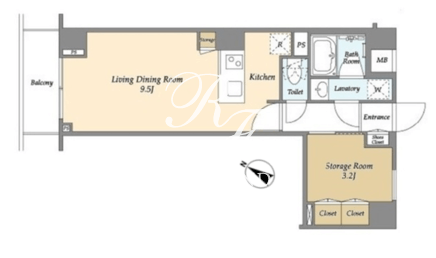 | 部屋詳細 | 洋室9.5帖/サービスルーム3.2帖 | ||