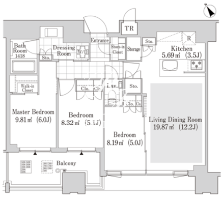 | 所在階/向き | 19階/南西 | 間取り | 3LDK+WIC+SIC |