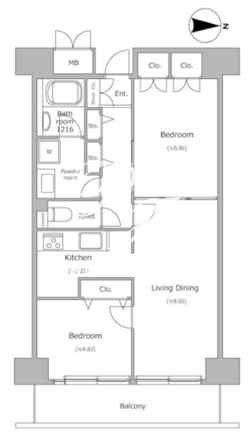| 所在階/向き | 12階/東 | 間取り | 2LDK |