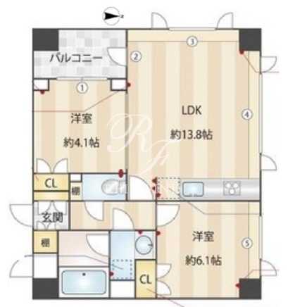| 部屋詳細 | LDK13.8帖/洋室6.1帖/洋室4.1帖 | ||