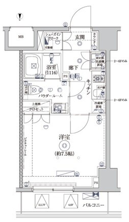 | 部屋詳細 | 洋室7.5帖/K2帖 | ||