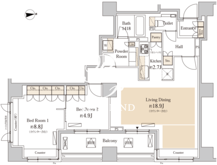 | 部屋詳細 | LDK21.6帖/洋室8.8帖/洋室4.9帖 | ||