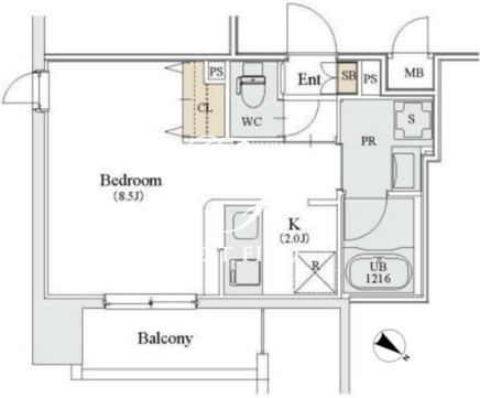 | 所在階/向き | 9階/北東 | 間取り | 1K |