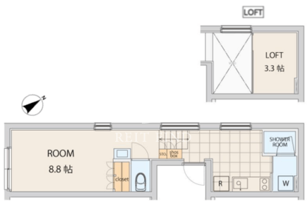 | 所在階/向き | 2階/北西 | 間取り | 1R+ロフト |