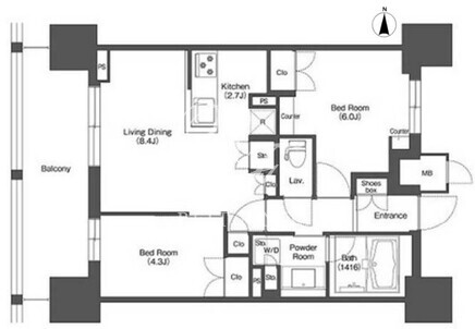 | 所在階/向き | 14階/西 | 間取り | 2LDK |