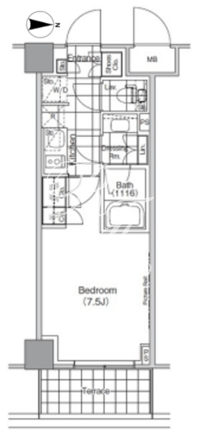 | 部屋詳細 | 洋室7.5帖/K2帖 | ||