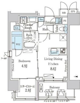 | 部屋詳細 | LDK8.6帖/洋室4.9帖/サービスルーム2.8帖 | ||
