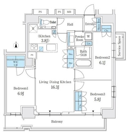 | 所在階/向き | 10階/南 | 間取り | 3LDK+WIC |