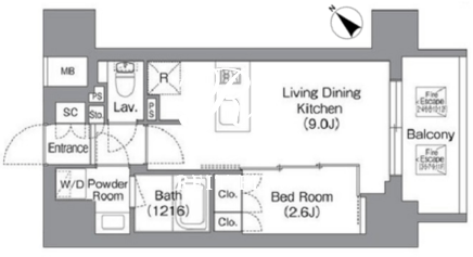 | 所在階/向き | 9階/南東 | 間取り | 1LDK |