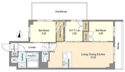 | 部屋詳細 | LDK13.6帖/洋室4.3帖/洋室3.8帖/洋室2.9帖 | ||