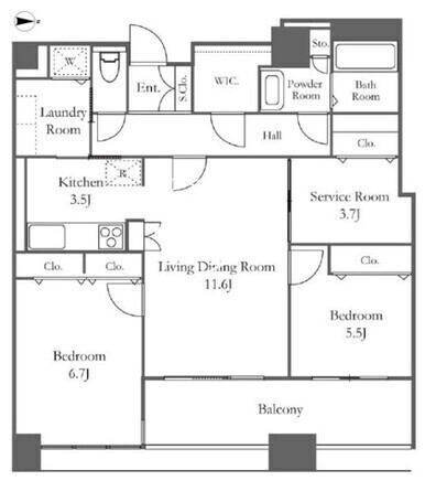 | 部屋詳細 | LDK15.1帖/洋室6.7帖/洋室5.5帖/サービスルーム3.7帖 | ||
