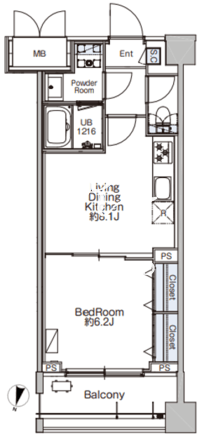 所在階/向き | 2階/北 | 間取り | 1LDK |