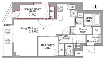 | 部屋詳細 | LDK12.6帖/洋室2.9帖/サービスルーム4帖 | ||