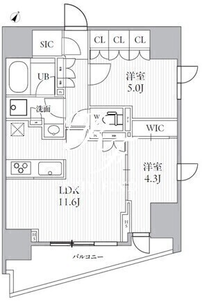 | 所在階/向き | 12階/南東 | 間取り | 1SLDK+WIC+SIC |