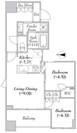 間取/面積 | 2LDK+WIC/52.78m2 |