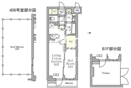 | 所在階/向き | 地下1階/西 | 間取り | 1LDK+WIC+SIC |