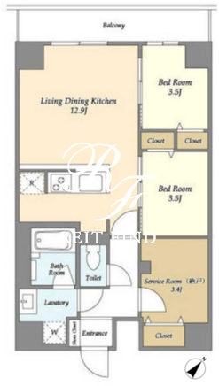 | 部屋詳細 | LDK12.9帖/洋室3.5帖/洋室3.5帖/サービスルーム3.4帖 | ||