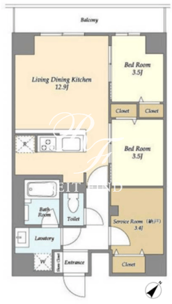 | 部屋詳細 | LDK12.9帖/洋室3.5帖/洋室3.5帖/サービスルーム3.4帖 | ||