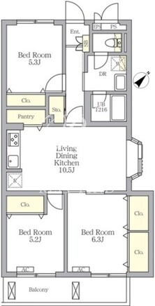 | 所在階/向き | 3階/南東 | 間取り | 3LDK |