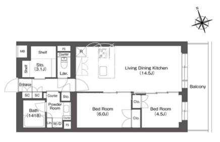 | 部屋詳細 | LDK14.5帖/洋室6帖/洋室4.5帖 | ||