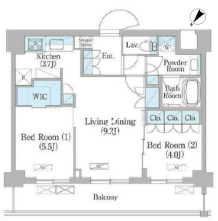 | 所在階/向き | 2階/北西 | 間取り | 2LDK+WIC |