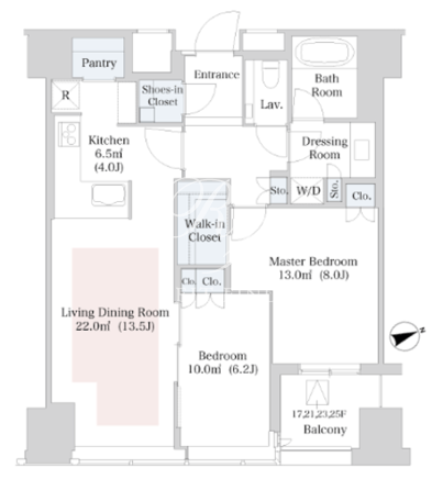 所在階/向き | 20階/南東 | 間取り | 2LDK+SIC+WIC |
