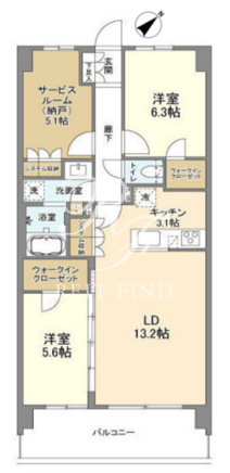 | 部屋詳細 | LDK16.51帖/洋室6.3帖/洋室5.6帖/サービスルーム5.1帖 | ||