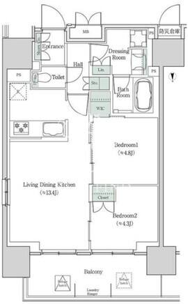 | 部屋詳細 | LDK13.4帖/洋室4.8帖/洋室4.3帖 | ||