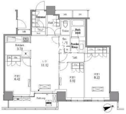 | 所在階/向き | 22階/東 | 間取り | 3LDK+SIC |