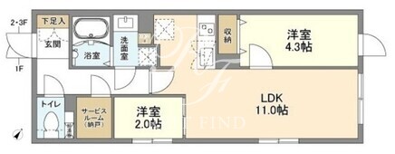 | 部屋詳細 | LDK11帖/洋室4.3帖/洋室2帖 | ||