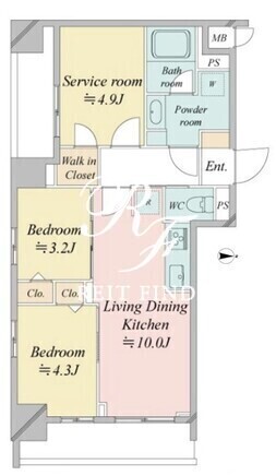 | 部屋詳細 | LDK10帖/洋室4.3帖/洋室3.2帖/サービスルーム4.9帖 | ||