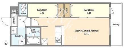 | 部屋詳細 | LDK12.1帖/洋室3.4帖/洋室2.6帖 | ||