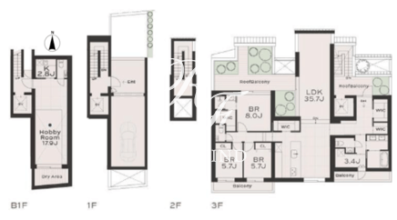 | 部屋詳細 | LDK35.7帖/洋室17.9帖/洋室8帖/洋室5.7帖/洋室5.7帖 | ||