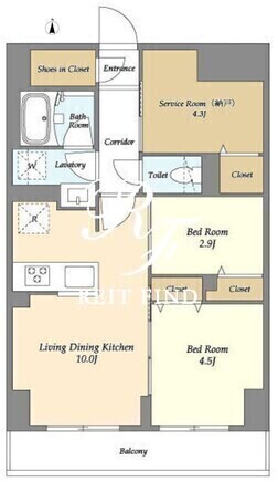 | 部屋詳細 | LDK10帖/洋室4.5帖/洋室2.9帖/サービスルーム4.3帖 | ||