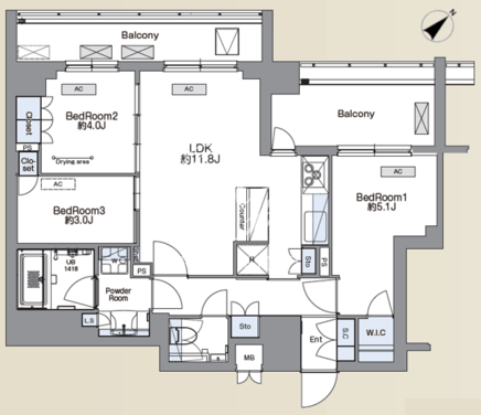 | 部屋詳細 | LDK11.8帖/洋室5.1帖/洋室4帖/洋室3帖 | ||