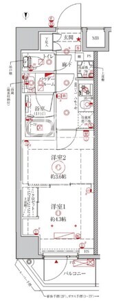 | 部屋詳細 | 洋室4.3帖/洋室3.6帖/K2帖 | ||