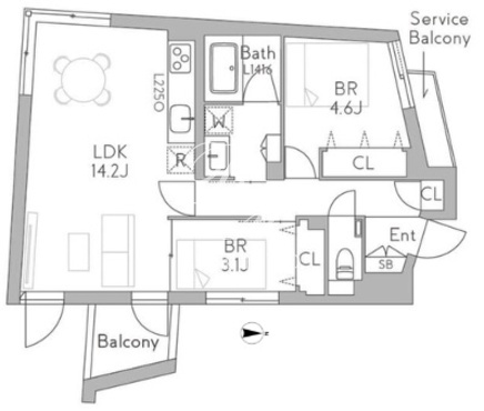 | 所在階/向き | 2階/南西 | 間取り | 2LDK |