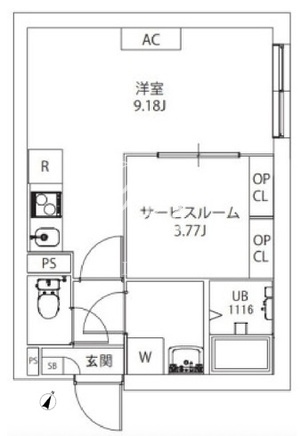 | 部屋詳細 | 洋室9.18帖/サービスルーム3.77帖 | ||